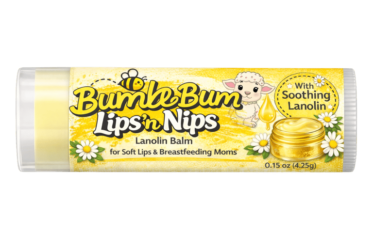 Chapstick made with soothing Lanolin oil for soft lips and soothing for breastfeeding moms.